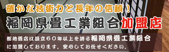 都地畳店のホームページにお越し頂き誠にありがとうございます。当店は福岡県で昭和8年創業、安心の国産畳だけを使う国産畳専門店です。お客さまにリラックスできる心地よい空間をお届けいたします。都地畳店では国産表の畳のみしか取り扱いしておりません! 畳の事で不明な事があれば何でもお気軽にお問合せください。